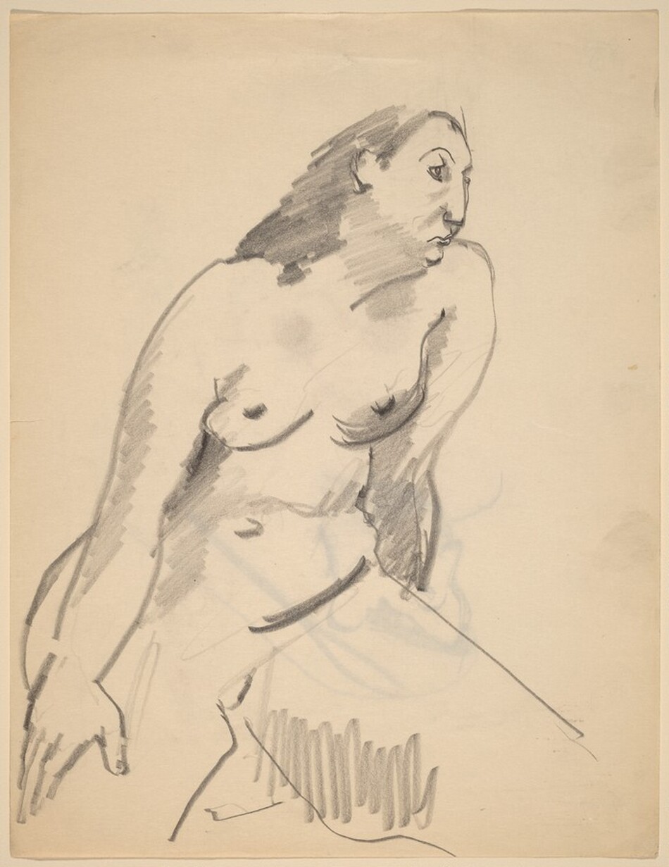 Seated Nude Woman Leaning Forward, Elbows on Knees