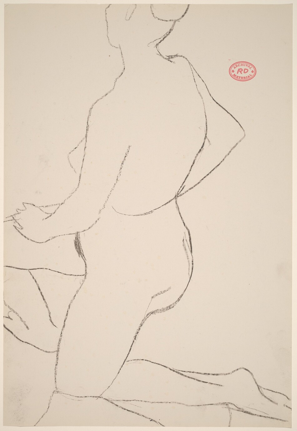 Untitled [female nude seated cross-legged and leaning on left arm]