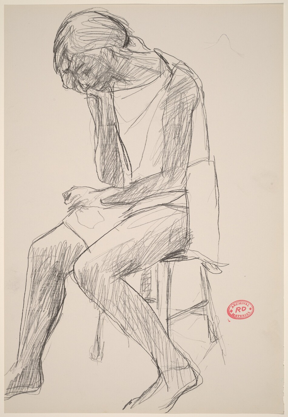 Untitled [side view of a female nude stretching back in a chair] [recto]