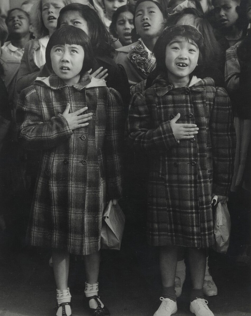 Children of the Weill public school shown in a flag pledge ceremony, San Francisco, California