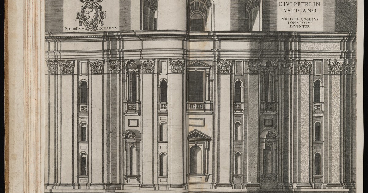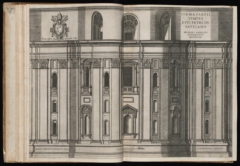 Lettered upper right: "Forma partis Templi Divi Petri in Vaticano", "Michael Angelus Bonarotus Inventor"