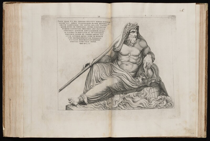 Lettered UL: "Amice quam tu hic effigiem spectatu raram demiraris Oceani est annis superioribus Romae reperta ... Nicolao Beatricio Lotharingo gratias habe vale Romae MDLX"