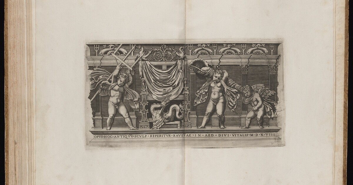 Lettered along the bottom margin: "Opus hoc antiquum sculp. reperitur Ravennae in aed. divi Vitalis M D X VIIII"