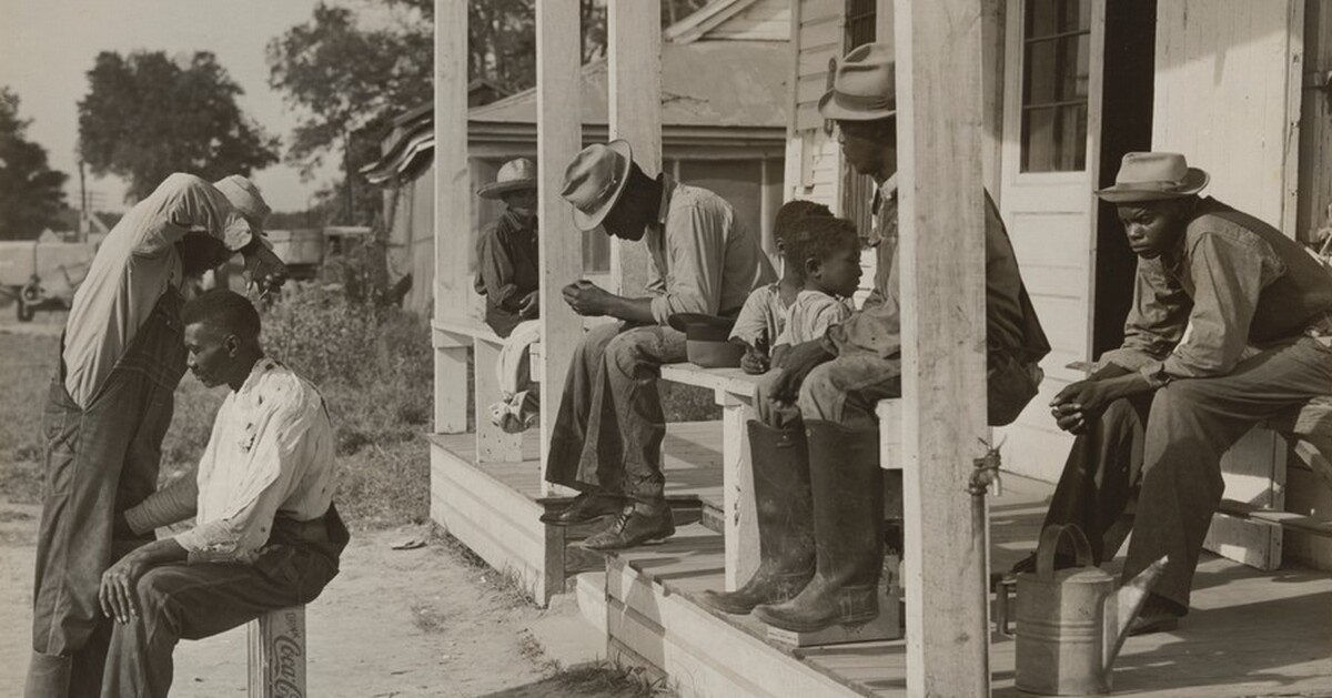 Haircut in Front of General Store and Post Office on Marcella Plantation, Mileston, Mississippi