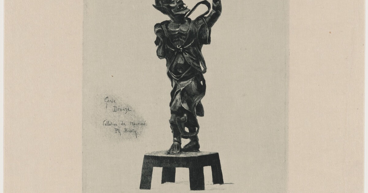 recto: in plate, at upper left: 3; in plate, at lower left: Genie / Bronze / Collection de Monsieur / Ph. Burty; verso: at lower right in graphite in later hand: g