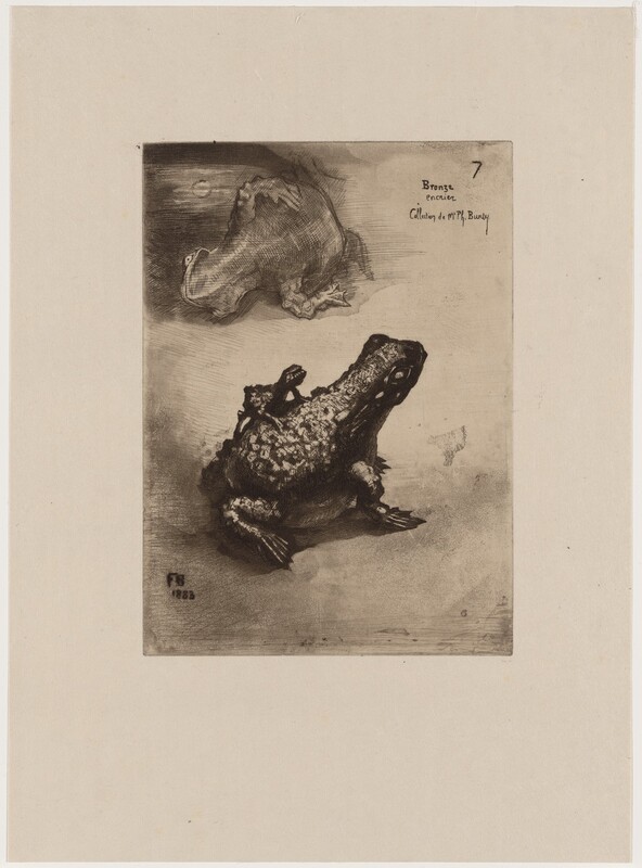 recto: in plate, at upper right: 7 / Bronze / encrier / Collection de Mr. Ph. Burty; in plate, at lower left: FB / 1883; verso: at lower right in graphite in later hand: i