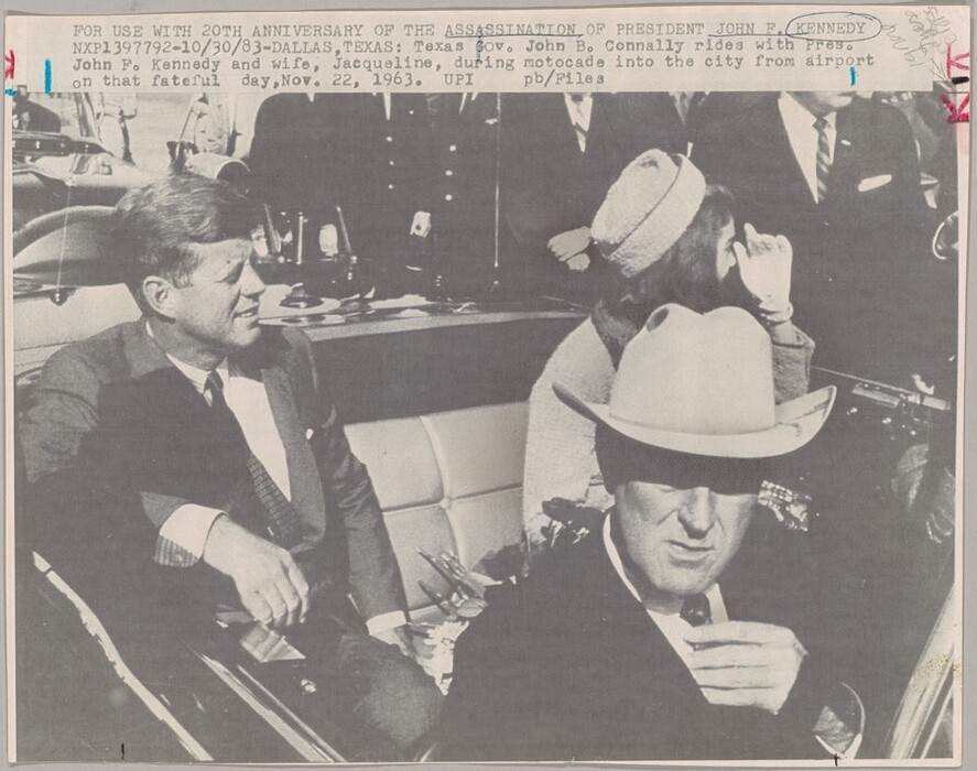 Title from caption on object: "Texas Governor John B. Connally Rides with President John F. Kennedy and Wife, Jacqueline..."