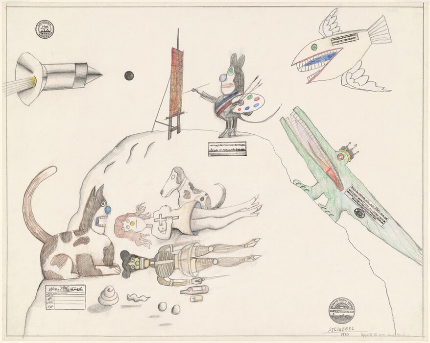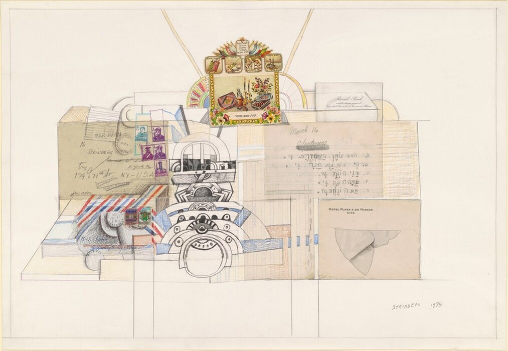 Saul Steinberg · 1974 · graphite, colored pencil, crayon, black ballpoint pen, pen and ink, and collage addtions on Schoeller's Parole paper · Accession ID 2016.143.28