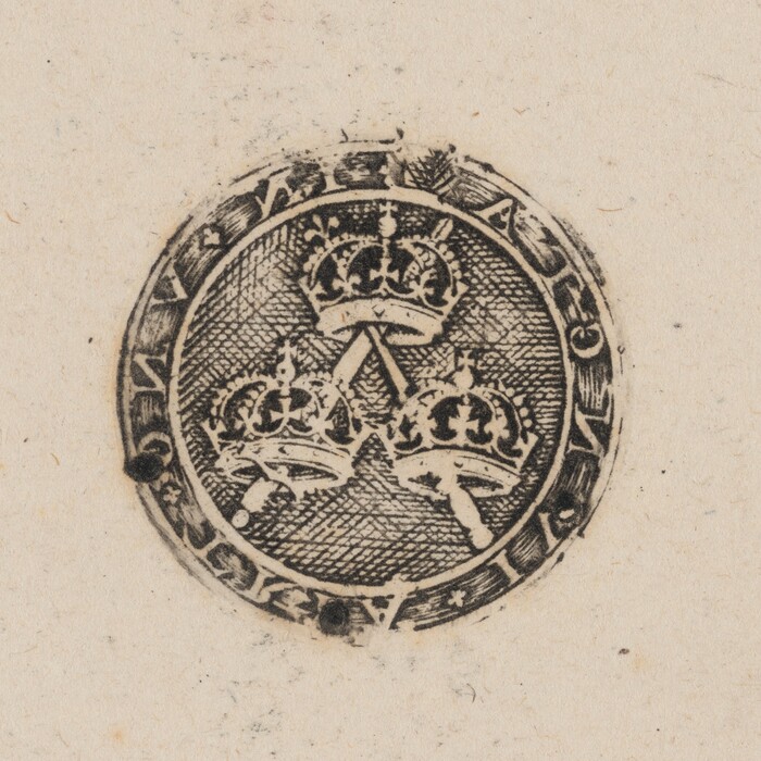 Three Crowns Supported by Two Sceptres [left half]