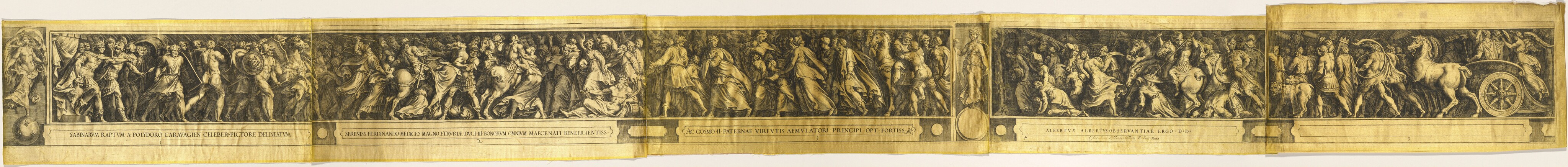 Cherubino Alberti · c. 1600 · five engravings printed on separate pieces of yellow silk satin backed with heavy paper · Accession ID 2004.114.2