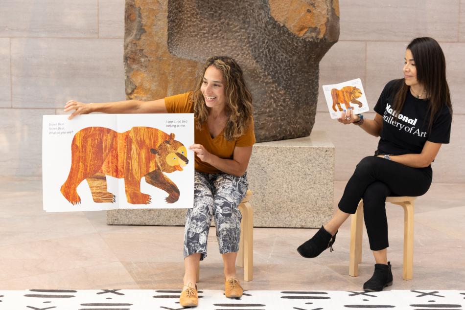 A kid playing with toys at a First Saturday event at the National Gallery of Art.