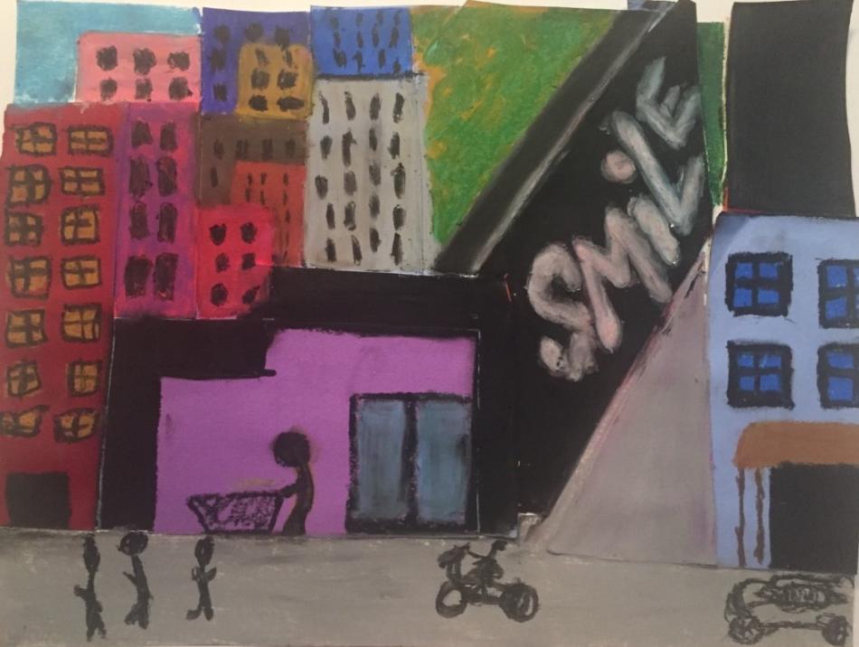 Make the background of your city scene first. Cut rectangles or other building shapes out of colored paper or cardstock, and glue them to your heavyweight paper. Add details to the buildings with oil pastels. Then, add people to your scene by drawing with pastels. Try to capture the energy of the city in your work!