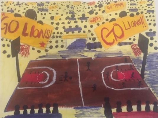 Like Jacob Lawrence, choose only four colors (plus black and white) to paint the scene. Using one color at a time, fill in each shape.