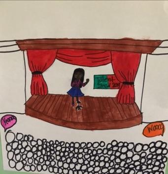 Draw the scene in pencil, using simple shapes and outlines. First, draw the people and objects at the bottom of the page. Then fill in the space around them, repeating some of the same shapes. Will you include yourself as part of this scene?
