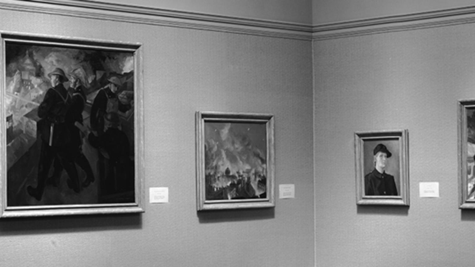 Overview: 22 British artists who served in the London Auxiliary Fire Service created these paintings and drawings of wartime London. 107 works were selected by Sir Kenneth Clark, director of the National Gallery, London; Sir Walter W. Russell, R.A., keeper of the Royal Academy; and J.B. Mason, former curator of the Tate Gallery, London. 6 of the paintings were acquired by the British government for the Tate Gallery. The exhibition was sponsored by the British government under the auspices of the British Library of Information, and by Mayor F.H. LaGuardia of New York, the United States director of civilian defense, who was present at the opening.