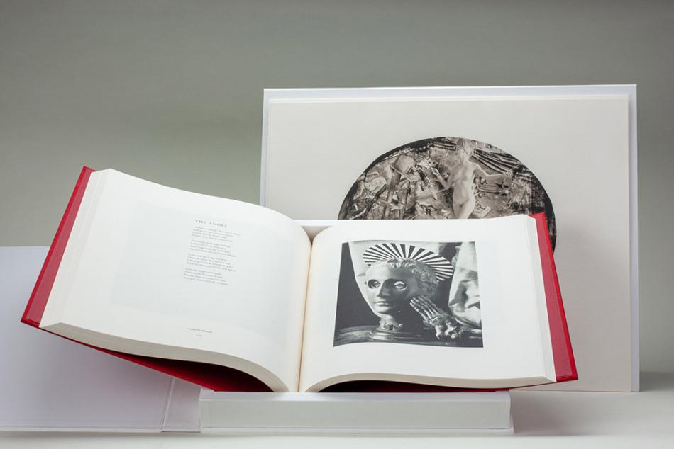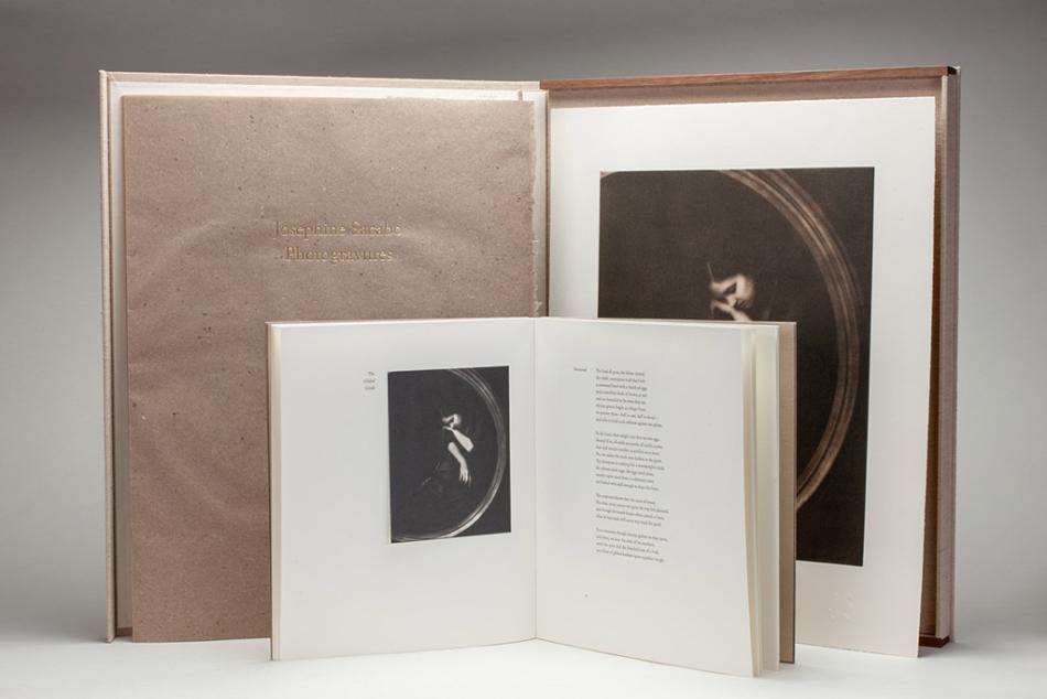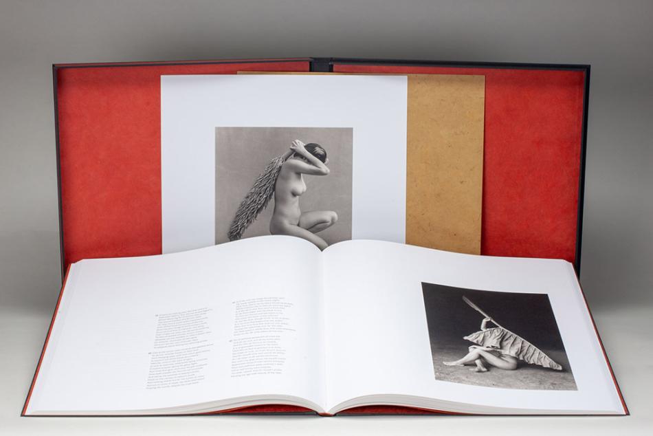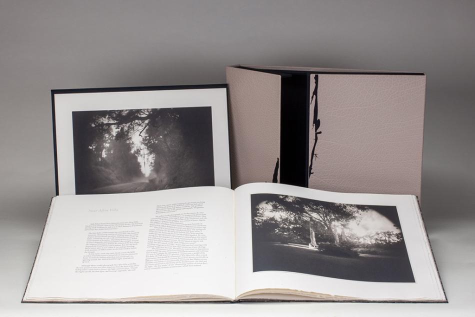 Inspired by Alfred Stieglitz and William Morris, each work is a unique expression of the group of eight to twelve artists and artisans involved in the project, which typically requires two to four years to realize. The work of photographers including Sally Mann, Josephine Sacabo, Masao Yamamoto, Adger Cowans, and Arthur Tress are given exquisite form by master printers such as John Marcy, Martin Axon, and Stan Klimek, and then paired with texts as diverse as William Shakespeare’s sonnets, the color theories of Johann Wolfgang von Goethe, and contemporary poetry by Keagan LeJeune. Through the editorial skills of John Wood, John Stauffer, and Collier Brown and the artistry of bookmakers such as binders Sarah Creighton, Mark Tomlinson, Amy Borezo, Erin Fletcher, Daniel Kelm, Kylin Lee, Lisa van Pelt, and Peter Geraty, typographer Chrissy Welzen, and printers Michael Russem, Michael and Winifred Bixler, and Arthur Larson, these works are transformed into exquisite book objects. From sculptural housings, to finely textured papers, luminous platinum prints, to the monumental scale of the volumes, each book takes us to a new world, providing a structure and framing for the union of text and image, intertwining and illuminating one another through designs referencing themes of the underlying work.