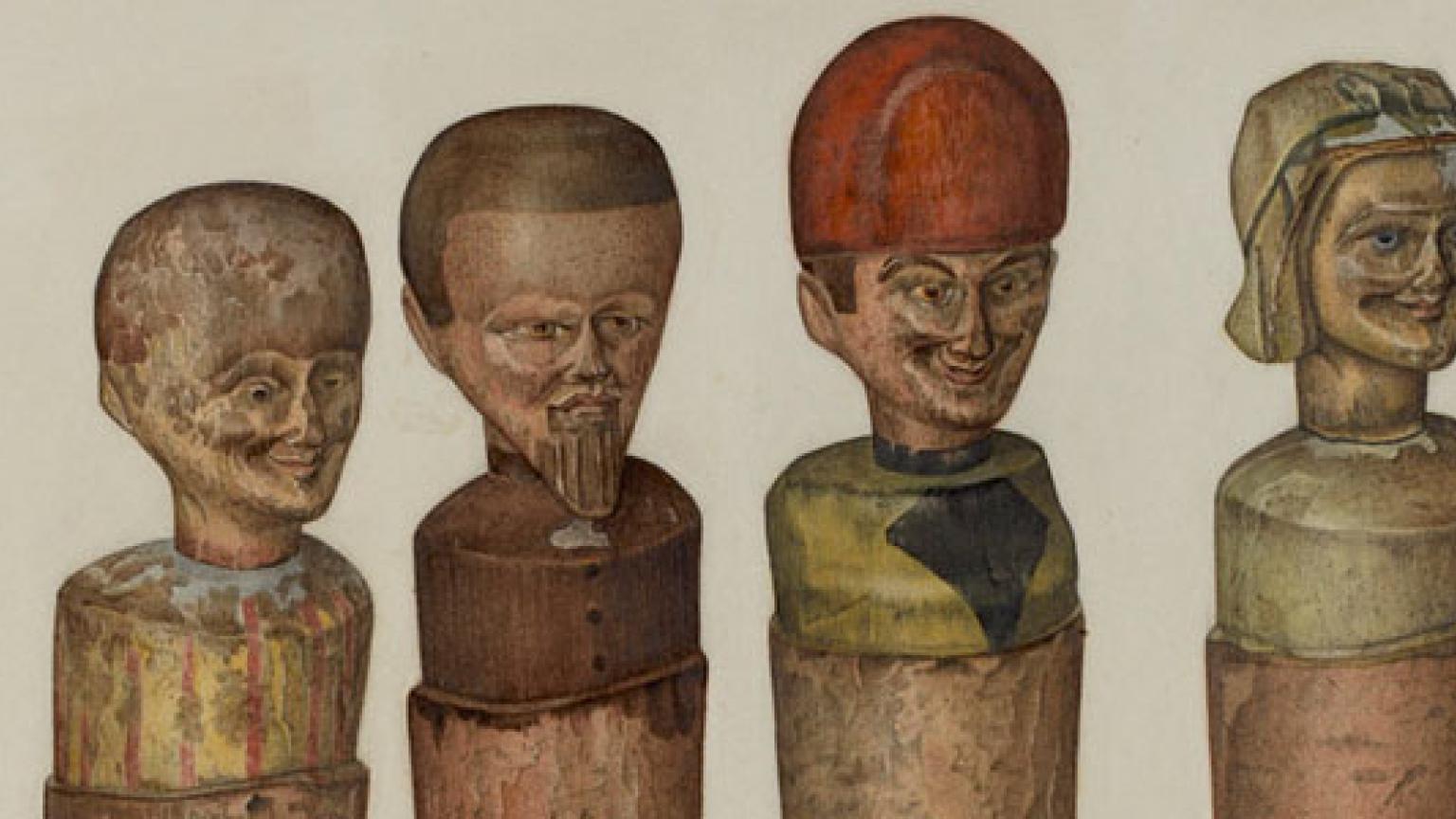 Overview: Watercolor illustrations of 111 early American toys, woven coverlets, quilts, figureheads, carousel animals, cigar store Indians, weathervanes, glass, furniture, and Shaker and Spanish colonial artifacts were selected from the Index of American Design.