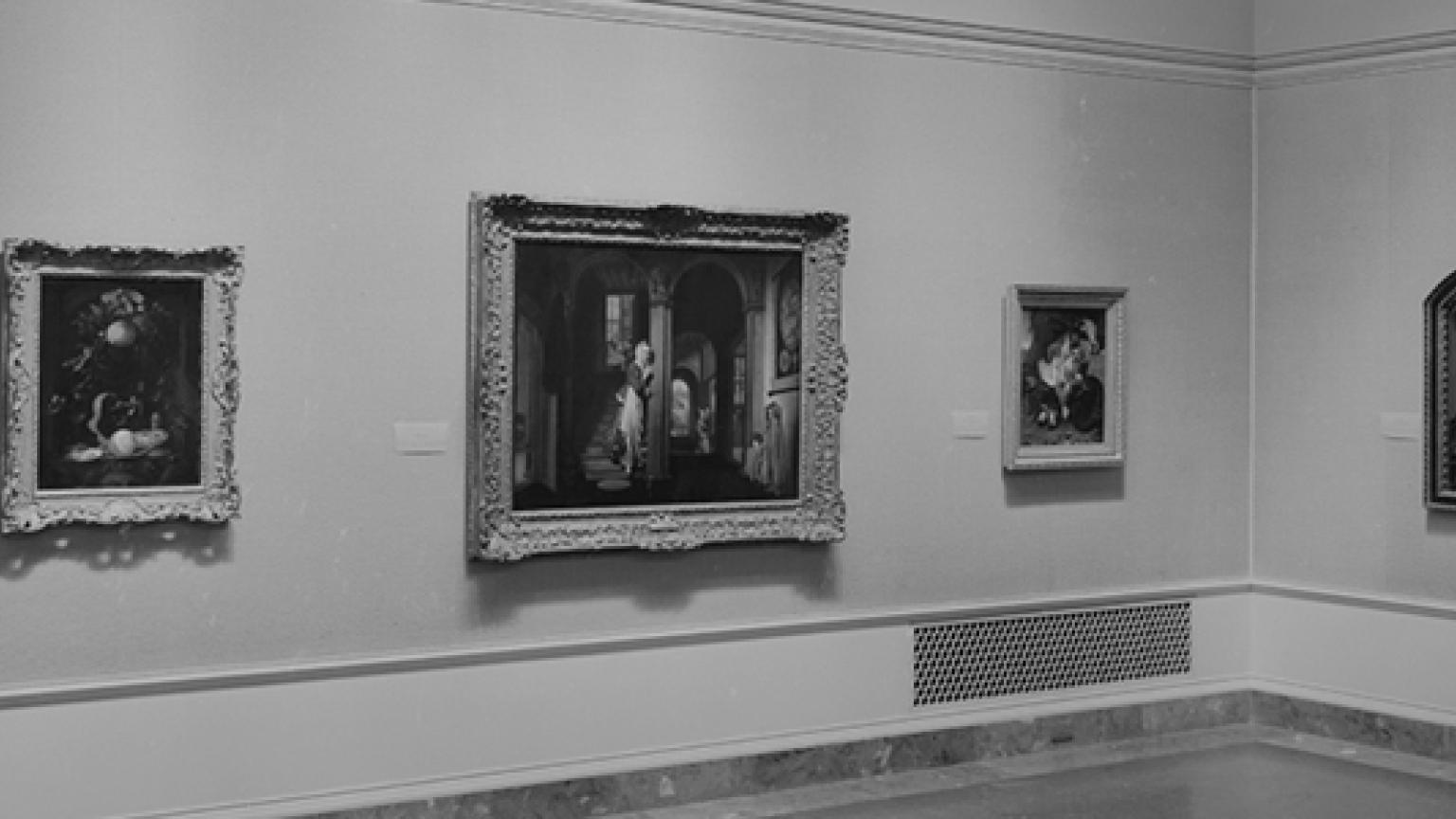 Overview: 46 paintings by 37 artists of the 16th and 17th centuries were lent by the government of The Netherlands. The exhibition was a token of thanks for the return of the pictures through the work of the officers and enlisted men of the Monuments and Fine Arts Section (MFAA) of the United States Military Government. Many of the paintings had been destined for the Hitler Museum, Linz, Austria. Of the 49 listed in the catalogue, 3 (nos. 1, 10, and 34) did not arrive for the Washington showing; 2 listed were exchanged for 2 others by the same artist.