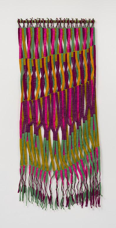 See a variety of textile techniques including weaving, knitting, netting, knotting, and felting. Understand the wide-ranging reasons artists from Anni Albers to Rosemarie Trockel and Jeffrey Gibson (Mississippi Band of Choctaw Indians/Cherokee Nation) have engaged with this art form. Some seek to effect social change, others to address political issues. Engaging with textiles as subject, material, and technique, others revitalize abstraction’s formal conventions or critique its patriarchal history and gendered identity.