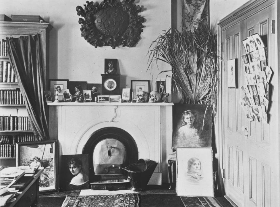 Almost as soon as O’Keeffe arrived in New York from Texas on 9 June 1918 Stieglitz began photographing her with what she later described as “a kind of heat and excitement.” For many years he had been intrigued with the idea of using photography as a way to explore and articulate his understanding of womanhood. He did so not only in Sun Rays—Paula, Berlin where, in the background, multiple portraits of Paula surround a picture of himself, but also in another patently autobiographical photograph, My Room, made in New York in the early 1890s (fig. 1). Using his room as a stage, as he would later use 291, he placed numerous photographs, reproductions of paintings, and a few original paintings on the floor, walls, and mantel. Portraits of his mother and father are prominently displayed, but all the rest are pictures of women: including his own photograph of Maria, Bellagio, a reproduction of Rubens’ Helena Fourment, and an unidentified reproduction of a nude (Key Set number 34 and fig. 2).