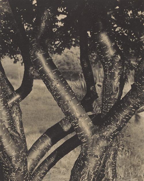 In the late 1910s and early 1920s, encouraged by the critical writing of the period and by the work of Dove, Marin, and especially O’Keeffe, Stieglitz, for the first time in his art, began to explore the rural American landscape. Photographing the hills, trees, and barns at Lake George, he studied the relationship between natural and man-made forms. He contrasted the strong geometry of the white, horizontally patterned clapboard siding on the Lake George barn with the dark, gnarled, and thrusting branches of a tree in the foreground, and he humanized the natural world by extracting the sinuous, limblike forms in The Dancing Trees (figs. 9 and 10; Key Set numbers 701–702).