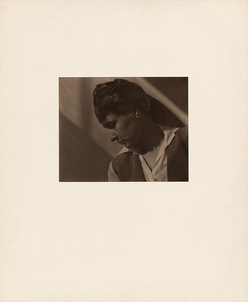 When Stieglitz mounted his early portraits of Georgia O’Keeffe in the late 1910s and early 1920s, he frequently adhered the untrimmed print onto a beige board and covered it with a cream or antique white window mat (depending on the tones of the print) with a smooth surface. For his 8 × 10-inch prints, he often used mounts that were 22 × 18 inches. For vertical prints, he usually left almost twice as much space on the bottom of the print as on the top; for horizontal prints, he usually left two-and-one-half times as much space at the bottom than at the top.