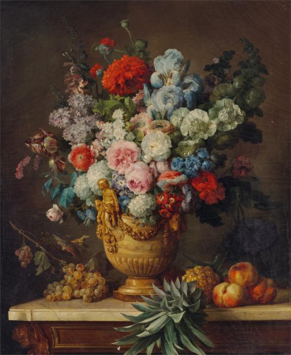 Anne Vallayer-Coster, Still Life with Flowers in an Alabaster Vase and Fruit, 1783, oil on canvas, Chester Dale Fund, 2023.40.1