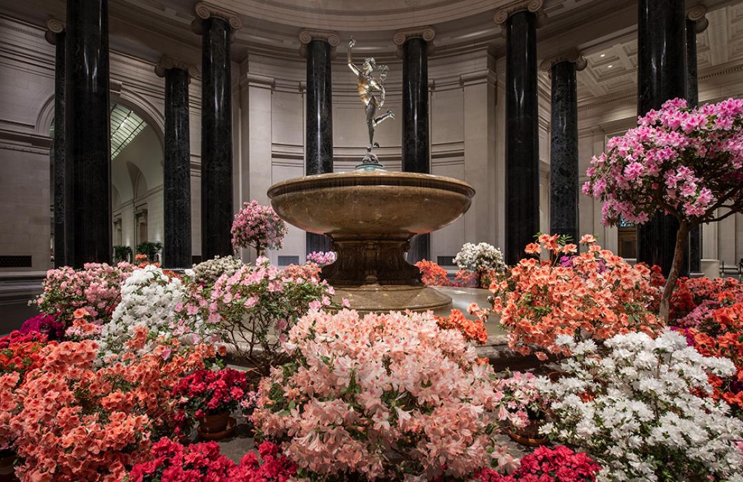 Our dazzling floral displays brighten the West Building Rotunda throughout the year. In March we really pull out all the stops with our cherished Ames-Haskell Azalea Collection. Catch the final days before the display switches over to fragrant white Easter lilies.