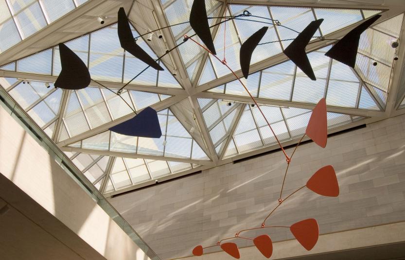To help achieve that, Pei commissioned Calder to create a work for the atrium. The artist’s inventive works and playful manner prompted his longtime friend, playwright Arthur Miller, to describe him affectionately as “a big child.”