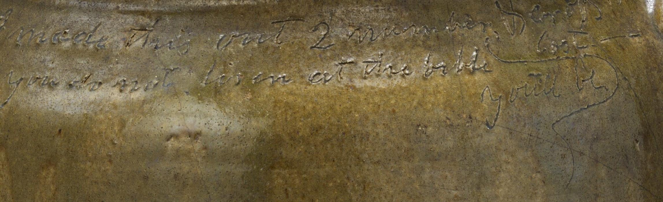 Dave was both a potter and a poet. His massive storage jars and jugs are remarkable for more than just their craftsmanship. Dave was also the earliest known enslaved potter to inscribe his jars.