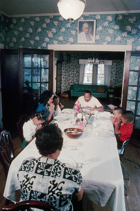 Gathering in King’s home—or simply being close to him—could have made someone a victim of the racist violence he attracted throughout his public life. But his guests eat in his home with ease, sitting next to his young daughter as she drinks a glass of milk.