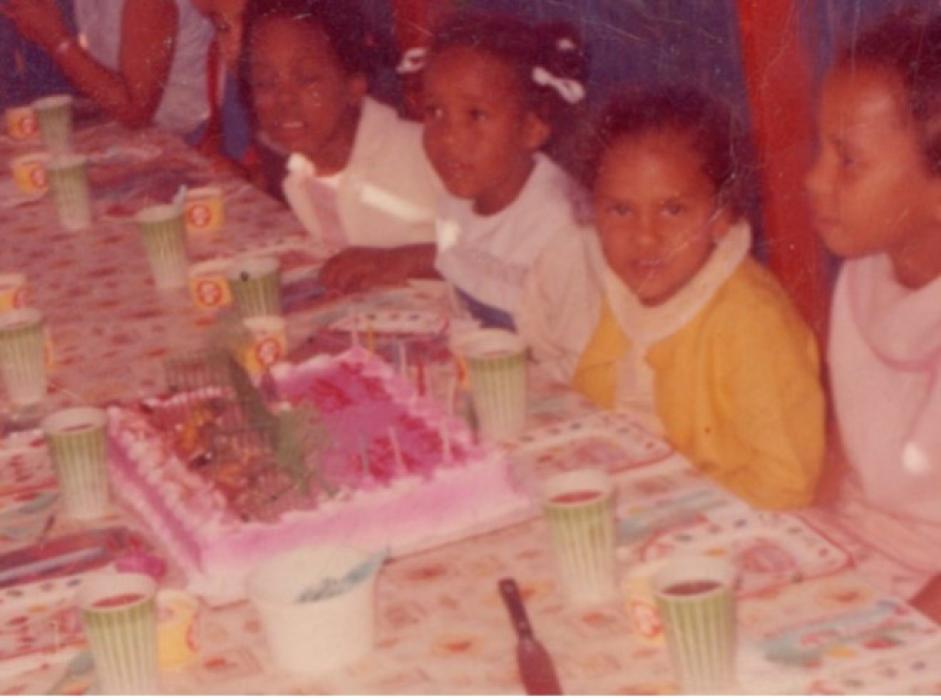 A young Cheryl Day (in yellow) at a birthday party. Photo courtesy of Cheryl Day.