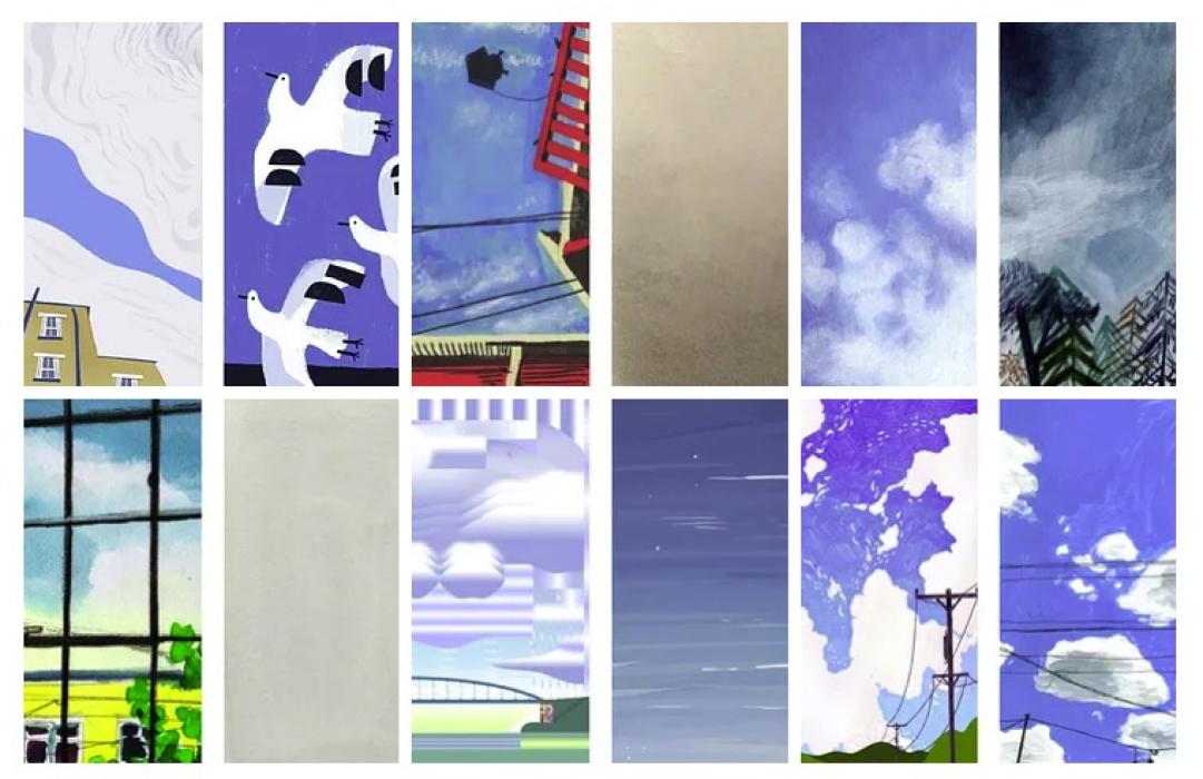 "On August 13, 2017, at precisely 12:00 pm Eastern Standard Time, 88 artists all over the world stopped what they were doing, looked up, and drew the sky…. Whatever sky the artist saw, they captured it on paper in their own unique style. They were, at that exact moment, separate skies. But when we view these drawings together, they become one far-stretching, simultaneous world view. They become a portrait of one shared sky."