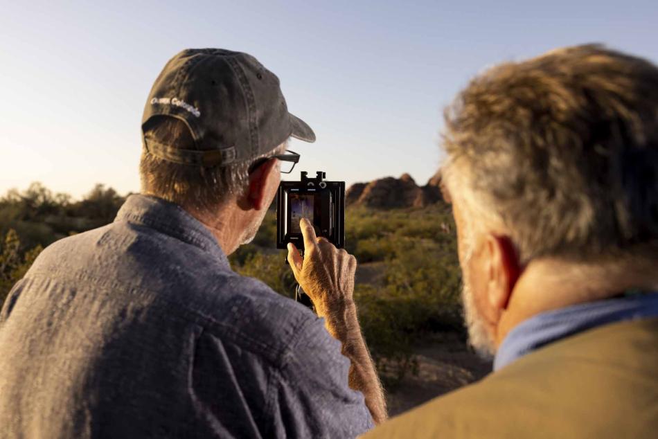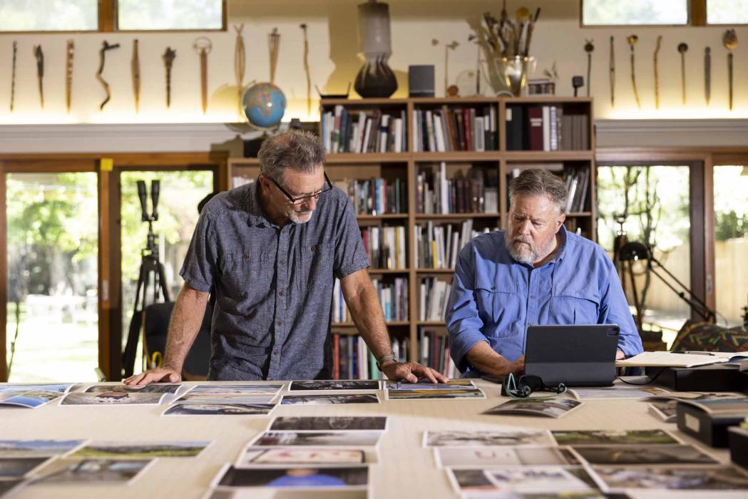 Mark Klett and William Fox at work on their next project in Klett's Arizona studio.