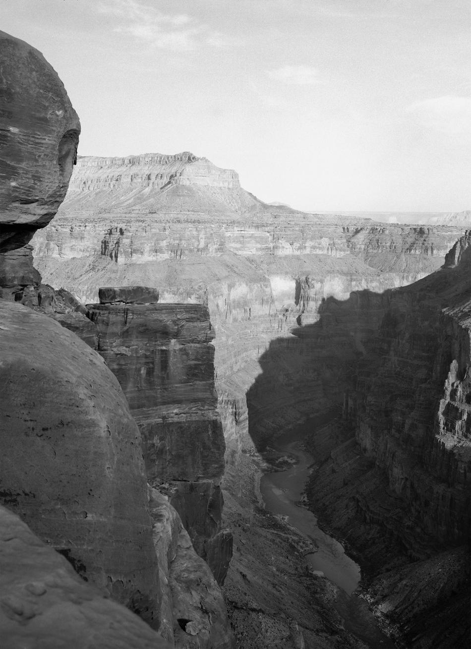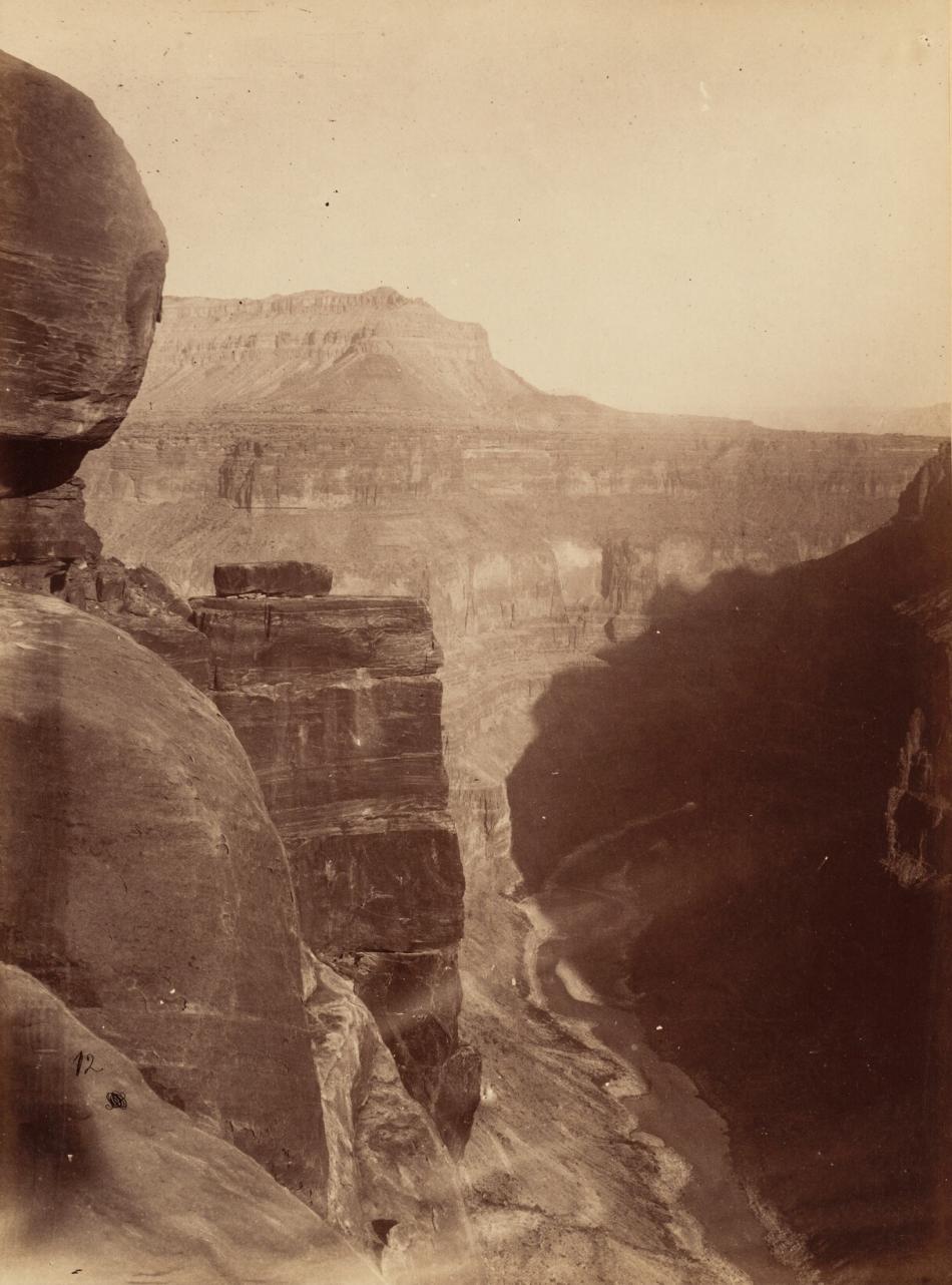 On another trip, Klett set out to recapture one of William Bell’s 1872 images of the Grand Canyon from its North Rim. But he and I had to question the photographer’s choice of vantage point. The sandstone ledge we found ourselves on was about 5,800 feet above the Colorado River. A single slip of only six inches would have sent camera and Klett over the edge.