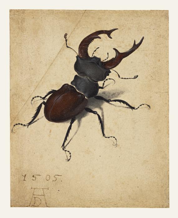 Albrecht Dürer, Stag Beetle, 1505, watercolor and gouache; upper left corner of paper added, with tip of left antenna painted in by a later hand, The J. Paul Getty Museum, Los Angeles, 83.GC.214
