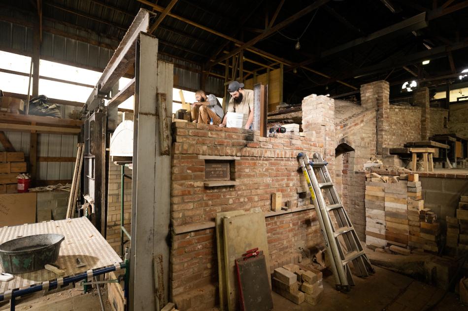 Kiln making is a complicated affair, one that requires many hands to build and use. “They’re enormous undertakings,” says Welch. “The Japanese make massive kilns because firing them is a huge use of resources and becomes a community event. So lots of potters typically would put their works into a kiln. They’d all participate.”