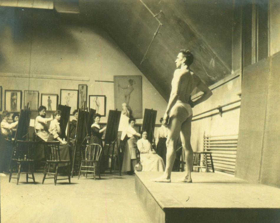 Women still struggled to get a full education. “It was thought completely inappropriate for a woman to draw from a male model,” Hirshler explains. Some suggested that women students wear veils during lessons. Art students began by drawing from plaster casts of classical sculptures before moving to human models. But, Hirshler adds, “even statuary galleries were sometimes restricted.”