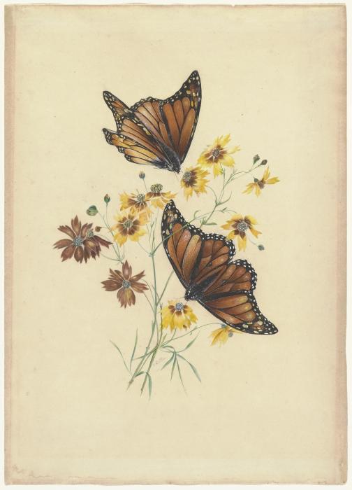 Charles Ethan Porter, Butterflies and Flowers, about 1878, transparent and opaque watercolor over very faint indications of graphite on wove paper, Hood Museum of Art, Dartmouth: Purchased through the Phyllis and Bertram Geller 1937 Memorial Fund