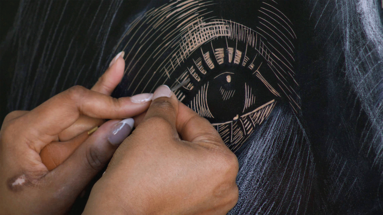 What happens when legacy, artistry, and womanhood collide? LaToya Hobbs creates a stunning woodcut portrait of Naima Mora, inspired by the life and work of legendary printmaker Elizabeth Catlett—Naima’s own grandmother.