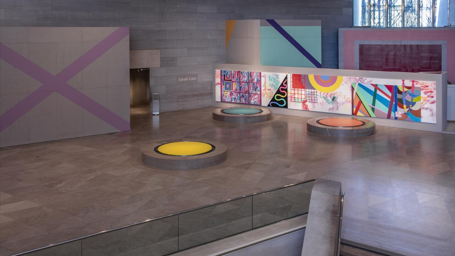 Sarah Cain talks about how fierce feminism and humor infuse her work My favorite season is the fall of the patriarchy. The 45-foot canvas at the center of the work combines painting and sculpture, moving from soft fields of spray paint to torn pieces of canvas, gold and silver leaf, beading, and an homage to Ruth Bader Ginsburg.