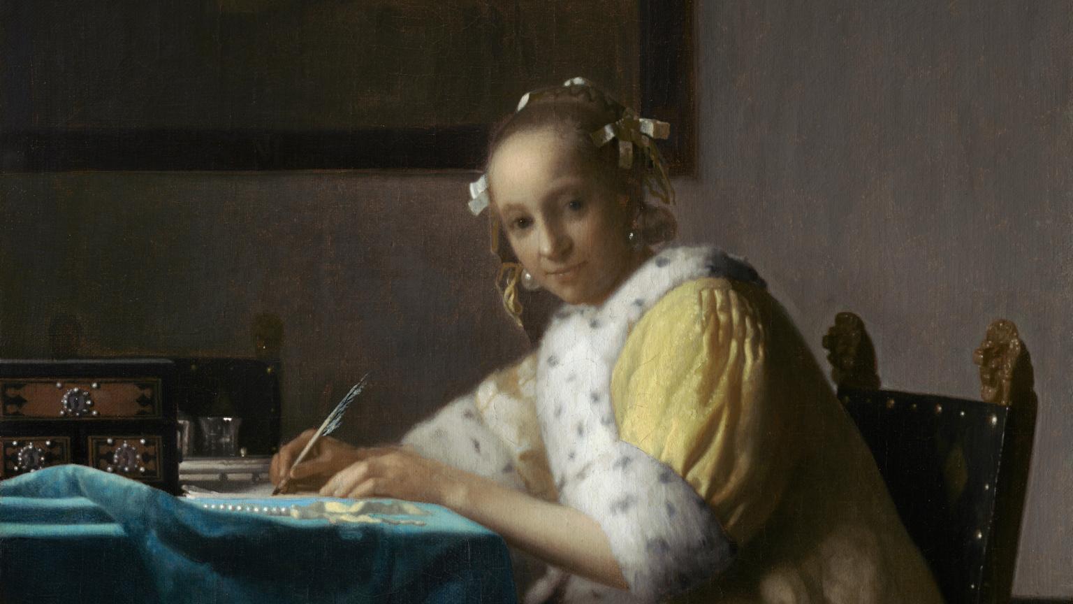 Johannes Vermeer's classic painting A Lady Writing inspired this evocative film. The exquisite skills of this 17th-century Dutch artist evoke nuances of light, texture, and reflection that describe both the artist's native city of Delft and the details of this much-loved work. Painted ermine, pearls, velvet, brass, and wood are illuminated by the sensitive touch of an unparalleled master.